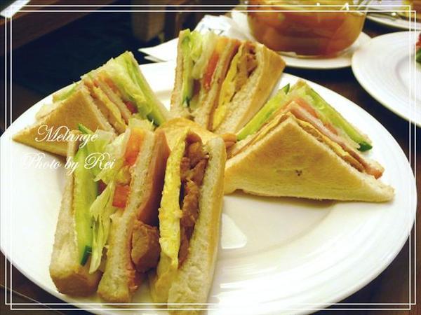 雞肉三明治也是絕妙的好吃啊,內餡有雞肉、蛋皮、厚厚的生菜及蕃茄,豐富的配料及一定程度的厚實,讓女生可能無法大口咬下。但小阿姨跟我,還是顧不得形象,把中間固定位置的牙籤拿掉後,便大口張著急忙啃了。如果說洪瑞珍三明治是簡單的好吃的話,米朗琪的總匯三明治就是豐盛的好吃了吧。生菜很適中地均衡了水分讓烤酥的麵包不致太乾,帶著微微甜味的美奶滋和雞肉、蛋皮、火腿香味混合,十分好吃啊。